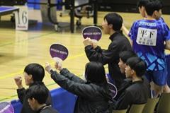 卓球部は、男女18名(3年生男子5名、2年生男子1名女子2名、1年生男子8名女子2名)で、顧問の廣瀬先生、江原先生のご指導の下、応援されるチームを目指し一人一人目標をもって練習に打ち込んでいます。 |