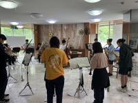 令和6年7月26日(金)~28日(日)福島県の横向温泉にある、マウント磐梯で合宿を行いました。県北大会でいただいた宿題を解消するため個人技およびアンサンブル力の向上を目指しました。涼しく快適な環境の中、おいしいお料理と体の芯から温まる温泉の助けもあり、充実した練習ができました。マウント磐梯のスタッフの皆様には、優しく丁寧に心温まるご対応をしていただき、感謝の気持ちでいっぱいです。大勢の人たちに支えられて吹奏楽の活動ができるという幸せをかみしめて、これからも日北サウンドを充実させて行こうと思います。