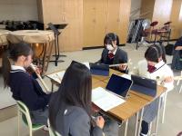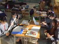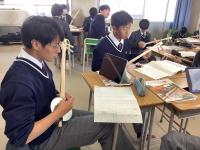 1年生の音楽選択の授業で、「島人ぬ宝」を三線で弾き語りする練習をしていました。 沖縄独特のリズムで演奏するのは難しそうですが、来年の沖縄修学旅行にむけて沖縄文化を学べるとてもいい機会です。