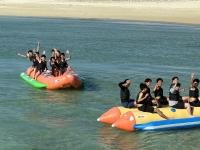 シュノーケリングは風の影響で中止となりましたが、バナナボートを2周行うことができ、生徒たちもとても楽しそうでした。バナナボートの順番を待っている間にはビーチバレーやドッチボールなどをしていました。日北生にとって、海は見慣れている場所かもしれませんが、沖縄の海はまた特別なものだったようです。