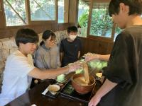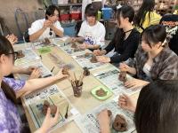 玉泉洞謎解きコース以外には、琉球ガラス体験、ブクブク茶、手作りシーサー、シーサー絵付け、機織りの5つのコースに分かれ、それぞれ体験を行いました。どのコースでも、生徒たちの一生懸命な眼差しや、楽しく語り合いながら製作している様子は、普段の授業での様子とはまた違った生き生きとした日北生らしさがあったように感じます。(引率した教員より)