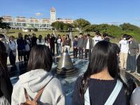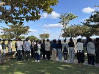 沖縄に到着してからの平和体験では、それまで興奮気味だった姿とは一転して、生徒たちは真剣な表情を見せていました。ひめゆりの塔の資料館では時間が足りなくなるくらい、一つ一つゆっくり見学していました。ガマ体験では当時の状況に思いを馳せながら真剣に話を聞き、平和記念公園でも石碑に刻まれた名前と真摯に向き合っていました。