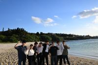 ホテルに戻ったあとは海岸へ散歩に行きました。ホテルの部屋でゆったりとした時間を過ごす生徒もいましたが、海岸に来た生徒はサンゴの欠片やシーグラスを集めたり、砂浜を駆けたり、海を眺めながら談笑をするなど、思い思いに時間を過ごしていました。日立の海とはまた違った、白くてサラサラとした砂浜には、綺麗に沈んでいく太陽、そして弾けんばかりの生徒の笑顔がありました。