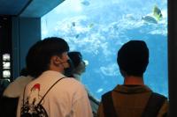 3泊4日の修学旅行もついに最終日となりました。本日は美ら海水族館に訪れ、各々が自由に水族館を周り、沖縄特有の魚などを見て回りました。特に、美ら海水族館といえば大きな水槽を悠々と泳ぐジンベイザメが見所であり、その迫力ある姿に目を奪われている生徒が沢山見られました。