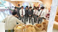この日は11月8日の学校公開の代休で、学校からバスに乗りJICA筑波へ行きました。講義や施設紹介、世界各地の民族衣装の試着、食堂ネリカでの世界の食事体験、図書館見学など盛りだくさんのプログラムを用意してもらいました。最後には、研究のために外国からJICA筑波に来日している研修員の方達と英語で交流をする機会をいただき、たくさんの笑顔がみられました。国際理解の第一歩として、この経験が活かされることでしょう。